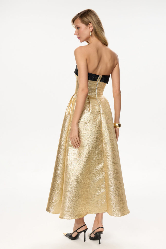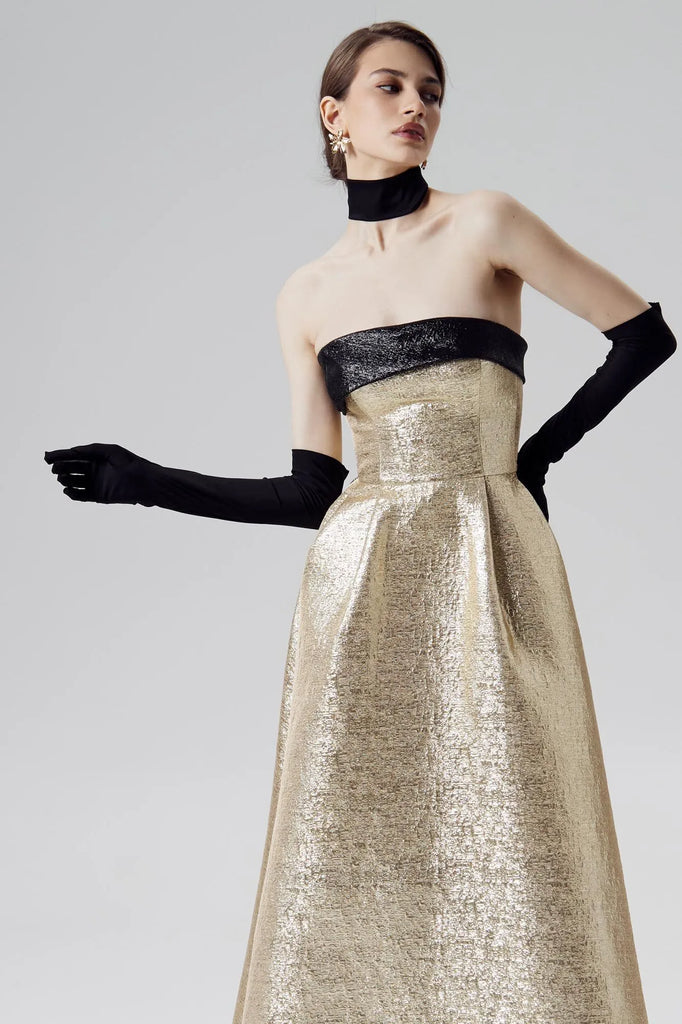 Elegant, absolutely magical delicate dress. Contrasting turn up emphasizes the elegance of the shoulders line and creates such a romantic appearance. Evening pumps and a clutch will be a great addition.