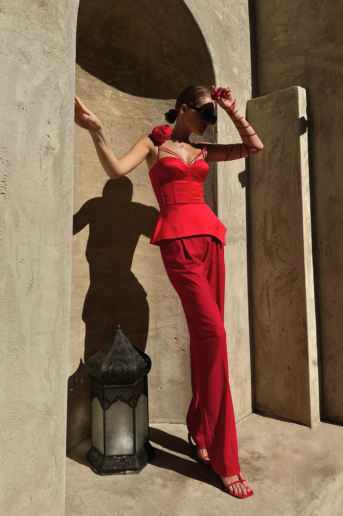 Perfect your closet with these trousers. Straight cut lengths the silhouette while the Red shade makes the appearance fresh and classy.